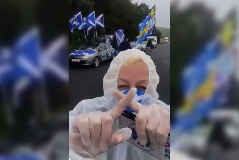 Days after Sturgeon said she had no plans for a border quarantine but was ‘not ruling anything out’ – ‘we’re going to have to be really hard-headed from a public health perspective’ – a small contingent of Scottish nationalists gathered on the boundary with England. Their vehicles, the Edinburgh Evening News reported, were ‘festooned with Saltires, SNP flags and independence slogans’. Some wore hazmat suits and reportedly shouted ‘plague carrier’ at motorists crossing over from England while a banner declared ‘Keep Scotland Covid Free’. One nationalist said: ‘Basically, what we’re saying is, stay the fuck out’; another: ‘If they’ll not stay at home, we’ll shame them to death’.