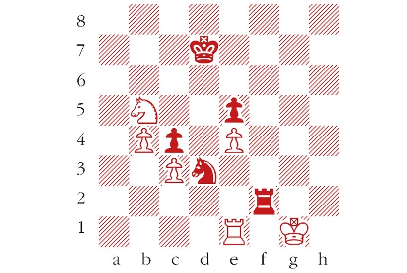 Black to play. Jones–McShane, London Chess Classic 2019. Last year I played two games of no-castling chess with Gawain Jones, each of us winning one. Here, Jones has won a pawn, but his pieces are scattered. Which move won me the game? Email answers to chess@spectator.co.uk by Monday 21 September. There is a prize of £20 for the first correct answer out of a hat. Please include a postal address.