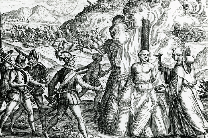 Cervantes tries to balance academic rigour and a narrative for the general reader. Largely, he succeeds, although occasionally the book feels written for the in-crowd — for whom ‘Nebrija and Vives’ need no introduction. Elsewhere, attempts to popularise result in cliché: ‘The market of Tlatelolco left Cortés reaching for superlatives.’ Also jarring is the author’s tendency to present a version of events and then, just when you’ve understood them, explain that they’re incorrect. After describing Moctezuma’s divination of signs and portents, Cervantes writes: ‘Yet there is nothing to indicate that this is what Moctezuma himself thought.’