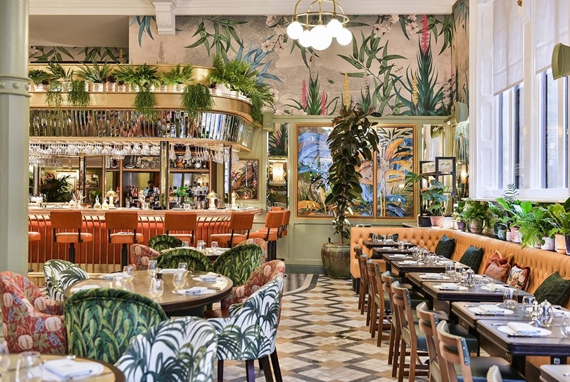 It is interesting that the fashionable decor in restaurants matches the fashionable politics outside: it is all Art Deco as the liberal media counts backwards to 1933. It is beautiful. Art Deco needs scale not to look like jewellery, or feminine disappointment, and the room is vast: it sat 182 before Covid-19. There are tiled floors; orange banquettes as at 45 Jermyn, which it resembles; much glass and silverware; wild and colourful art which conspire to make it look like a tropical garden. It is filled with those students not walking around Oxford in sombre crocodiles of subfusc, which makes them look like weirdly sexless vampires. These ones seem cheery — and why not? They study in a city of defensive walls.