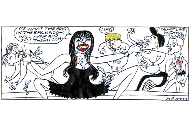 To transport a pinch of snuff around the face mask and up into one’s nostril is a relatively simple process, requiring a minimum of dexterity. But what then? These days, the ‘snuff sneeze’, once so refreshing, is a messy business, particularly when combined with the chewed remnants of partridge and roly-poly pudding. Emerging from the Garrick, HRH and I removed our masks, only to find our faces spattered with assorted gubbins. Needless to say, the Duke rose to the occasion. ‘And if you can do this but not the other, something-something-something, then you’ll probably be a man, my son,’ he announced, entirely unprompted.