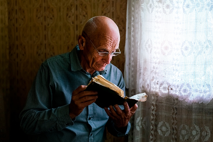 The house has three storeys. The lower two are caves connected by a ladder, the third is a bedroom supported on rafters. I have a desk in the bottom cave; the living room and kitchen are in the cave above. The other day I was at my desk at the bottom when I fancied another cup of coffee. So I climbed the ladder into the living room, and another short ladder into the kitchen, and put the kettle on. While waiting for it to boil I heard someone moving about in the bedroom above. As far as I knew I was alone in the house, so I mounted the stairs to see who or what was clomping about up there. I found an elderly man investigating the books on my bedside cabinet. I don’t know which of us was the more surprised.