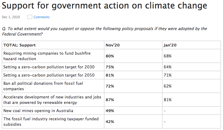 The survey suggests a majority of voters would favour stronger climate action earlier, with 75% of the sample supportive of setting a net zero target by 2030 rather than mid-century … an 11 point increase…