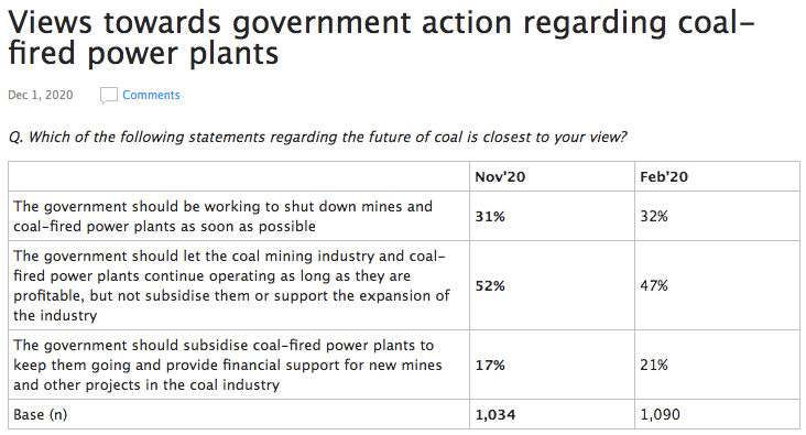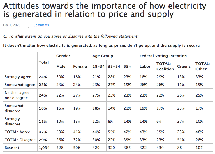 [V]oters were also asked whether they agreed or disagreed with the statement: “It doesn’t matter how electricity is generated, as long as prices don’t go up, and the supply is secure”.