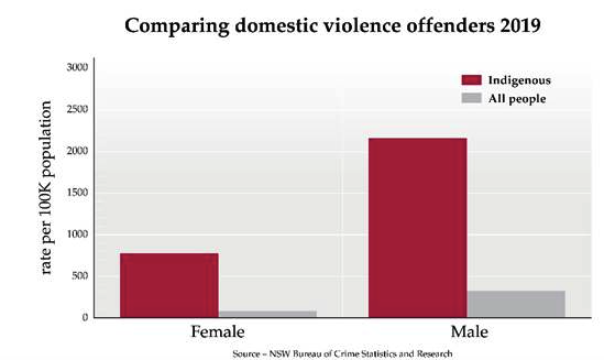 It took a special request to the NSW Bureau of Crime Statistics (BOSCAR) to dig out this vital statistic. The BOSCAR data shows that whilst overall rates for male perpetrators of domestic assault are dropping, women’s rates are increasing, with indigenous women showing the most dramatic rise. They are now eight times more likely to perpetrate domestic assault than women in general (the full statistics are available here):