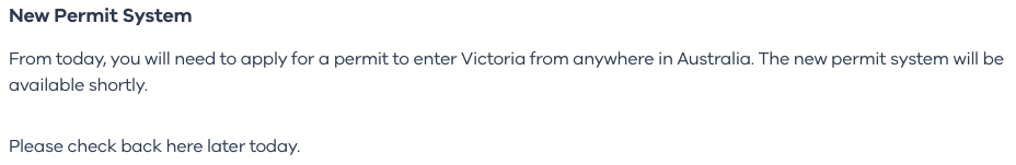 If you want to apply for a permit to return to Victoria from NSW — from anywhere, even where coronavirus is not a significant issue, such as regional Western Australia — you are today instructed to visit the Services Victoria website for the online form.