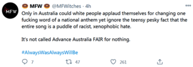 Ever since Prime Minister Scott Morrison’s (ridiculous) decision to announce via Tweet the changing of Australia’s national anthem, the usual suspects of left-wing activism have been out in force.