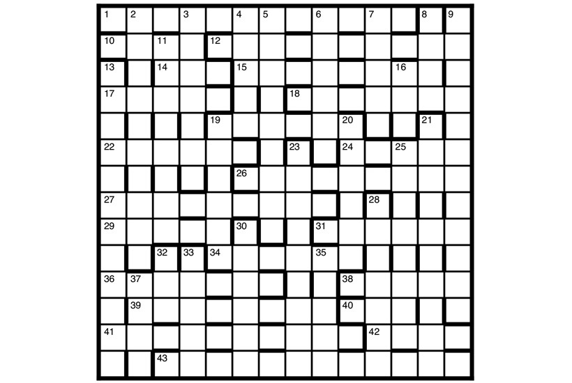 A first prize of £30 for the first correct solution opened on 22 February. There are two runners-up prizes of £20. Please scan or photograph entries and email them (including the crossword number in the subject field) to crosswords@spectator.co.uk – the dictionary prize is not available. We will accept postal entries again at some point. Apologies that there may be a delay in sending out prizes at present.