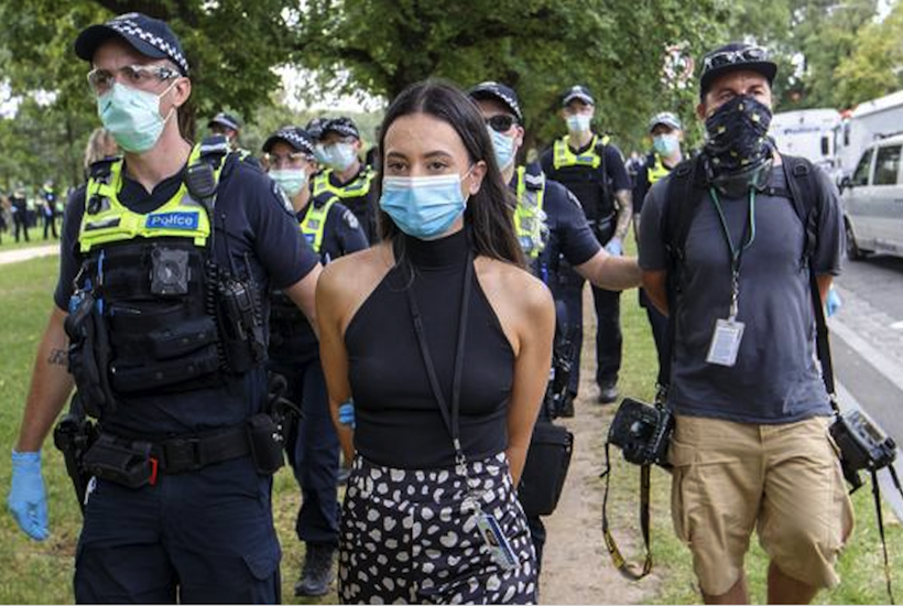 A Sunday Herald Sun journalist and photographer were arrested while reporting on the protest against the coronavirus vaccine.