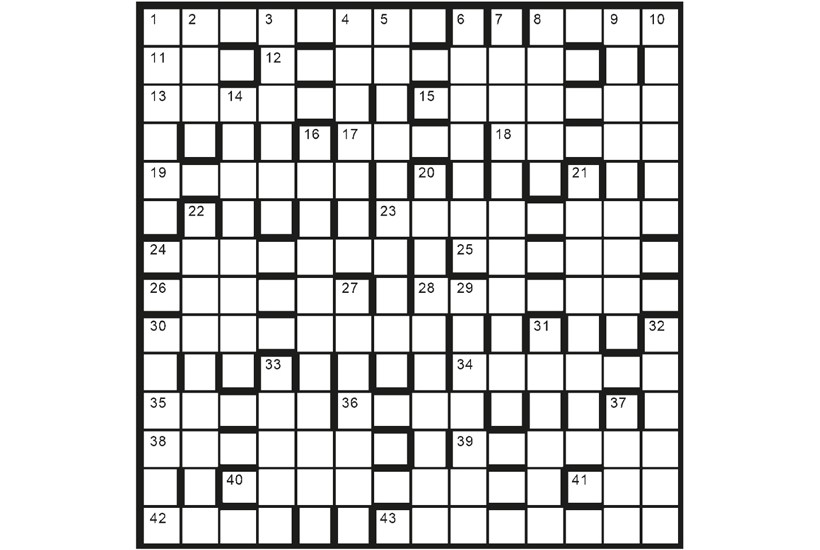 A first prize of £30 for the first correct solution opened on 12 April. There are two runners-up prizes of £20. Please scan or photograph entries and email them (including the crossword number in the subject field) to crosswords@spectator.co.uk – the dictionary prize is not available. We will accept postal entries again at some point. Apologies that there may be a delay in sending out prizes at present.