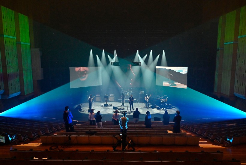 Another of this year’s best received albums has been Isles, by the Northern Irish duo Bicep, whose selling point is that they make dance music that people who used to rave in 1995 can listen to at home with a nice Merlot, instead of coming home saucer-eyed and drenched with sweat at five in the morning. The retro vibe extended — perhaps unintentionally — to the visuals. When we weren’t watching Andy Ferguson and Matt McBriar fiddle with electronics in a blank white room, we were watching the kind of colour and picture manipulation that would once have been preceded by Michael Rodd saying: ‘Tonight on Tomorrow’s World, how computers will change the way we look at the world.’