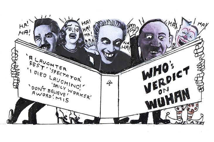 Now, call me Captain Sceptical, but China is run by a regime which, as I write, is allegedly committing genocide on its Muslim population and crushing human rights in Hong Kong. I therefore believe it is, to say the least, capable of concealing a few folders behind the sofa, thus preventing the discovery of any embarrassing ‘research’. Moreover, given that the WHO is so cowed by China that its officials can’t bring themselves to say the word ‘Taiwan’ in TV interviews, I wonder if WHO investigators even got inside the lab. Indeed, if this were a comedy, my script would go something like this: