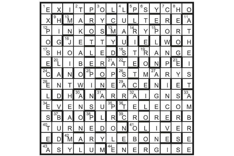 Four unclued lights are places in Britain with MARY in their name. The remaining unclued lights can be linked with MARY (see Brewer). (Peter, Paul and Mary have been the theme words of Doc’s puzzles numbered 2489, 2492 and 2495.)