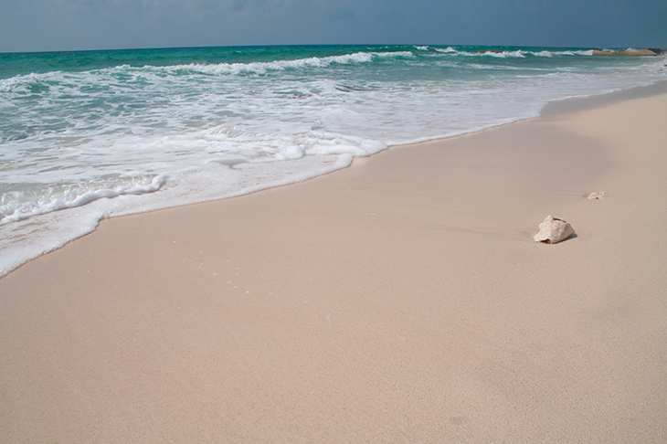 And unlike the soulless grey boulders or mud-brown sand that passes for a beach elsewhere along that coastline, the beaches here are of fine white sand. Moreover, when I looked down from the first low headland into the sea, I was reminded of Graham Greene’s memorable assessment of Evelyn Waugh’s prose, which was, he said, ‘like the Mediterranean before the war: so clear you could see to the bottom’. On the day I went, it was like that still. White sand, pellucid sea. Shut one eye and you could be on a deserted Caribbean island. I was so surprised.