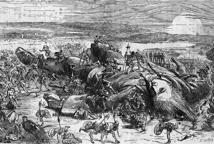 At that moment, Moby-Dick breached the waves, opened his jaws and chomped a piece out of the Pequod’s bow.