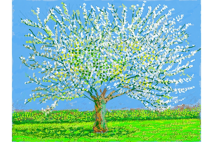 But also, at La Grande Cour, he could paint all day, every day, from sunrise to bedtime at 9.30 p.m., except on full-moon nights, when he would go out to paint the moon. At 82, far from slowing down, he seems to be speeding up, producing at least one and sometimes two iPad drawings a day. And best of all: ‘Everything is here! Every kind of tree — apple, pear, plum — and you see the sky all around you… I’m living in the middle of my subject here.’