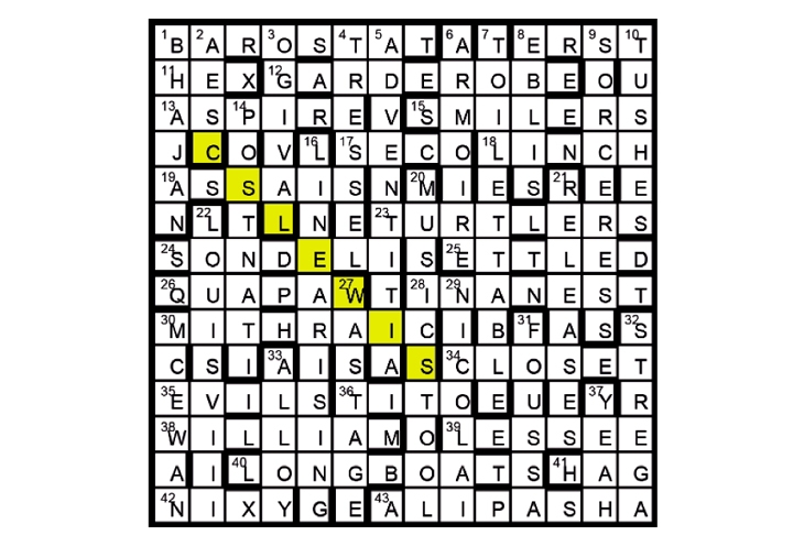 The theme was C.S. Lewis’s The Lion, the Witch and the Wardrobe. 38A (of Scotland), 43A and 22D were all called ‘The Lion’ (see Brewer’s entry for lion); 11A, 41A and 9D are all witches; 12A, 34A and 6D are wardrobes.