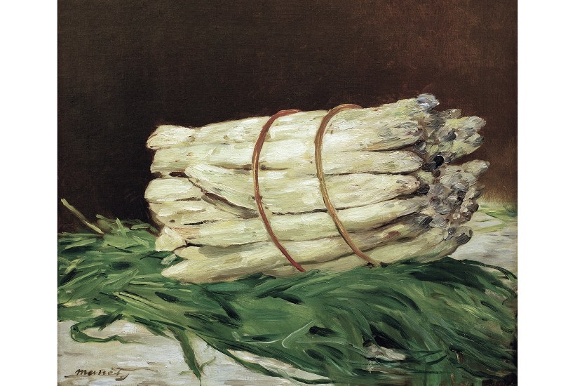 Even when cooked, asparagus are, it must be said, decidedly odd-looking. In shape and tone they challenge the palette in much the same way as they do the palate. It is perhaps not surprising that Proust took such an interest in them. Inspired, some believe, by his friend Charles Ephrussi, Proust had Elstir, the artist, produce a painting like Manet’s in À la recherche du temps perdu and offer to sell it to the Duc de Guermantes. ‘Trois cents francs, une botte d’asperges!’ exclaims the Duke. You can bet it was worth every centime.