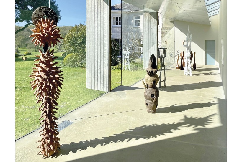 A longer view of Pope’s oeuvre is on offer at the New Art Centre near Salisbury in a mini-retrospective that starts with a group of his elegantly carved and polished pre-Parkinson’s ‘Yews’ (1981) and ends with the lumpen fired stoneware ‘Medium Weird’ (2020), a rabbit-eared, pot-bellied product of lockdown that made me laugh out loud. Heaven knows what really weird would look like. In between are spin-offs from the artist’s two gesamtkunstwerks: ‘The Oratory of Heavenly Space’, a scheme for a chapel to house his many religious works — including the life-sized terracotta ‘John the Baptist Pointing the Way and Lit by His Own Light’ (1993-96) and the gaily coloured, borderline obscene ceramic ‘Apostles’ Piss Font’ (1995) on show here — and ‘The Motorway Service Station of the Seven Deadly Sins and the Seven Virtues’, Pope’s bid to give the motorway stop a moral dimension. Work on this project seems to have focused mainly on sanitary fixtures such as the biomorphic ceramic washbasins — one silver, the other pink, with multiple plugholes — in this exhibition. ‘All the urinals flush,’ Pope once assured me, ‘but I shall take my hat off to any curator who plumbs them in.’