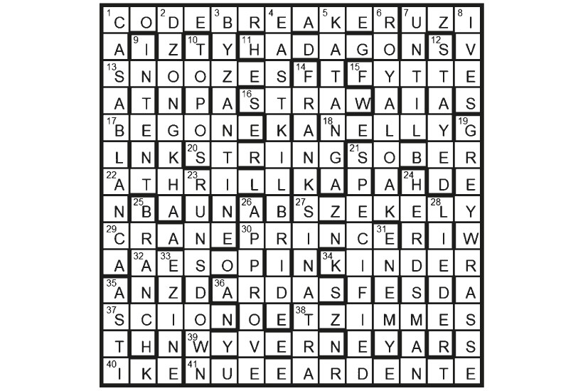 The unclued lights are the final headwords for B, D, E, F, S, T, U, W, as listed in Chambers.