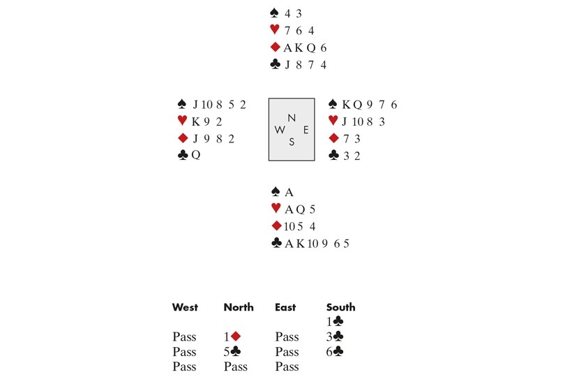 West led the ♠J. Robert won, cashed the ♣A, crossed to dummy’s ♣J, and ruffed a spade to eliminate the suit. Next he cashed the ◆AKQ in the hope the ◆J would drop or the suit was 3-3. When East showed out, however, he found a neat solution: he simply played a fourth diamond and discarded a heart from hand, forcing West to return a heart or give him a ruff-and-discard.