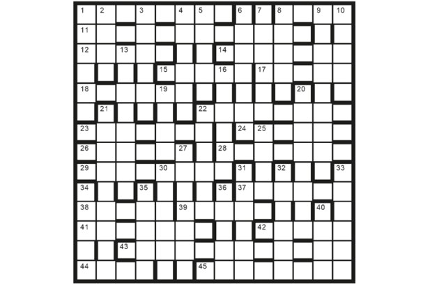 A first prize of £30 for the first correct solution opened on 26 July. There are two runners-up prizes of £20. Please scan or photograph entries and email them (including the crossword number in the subject field) to crosswords@spectator.co.uk – the dictionary prize is not available. We will accept postal entries again at some point.