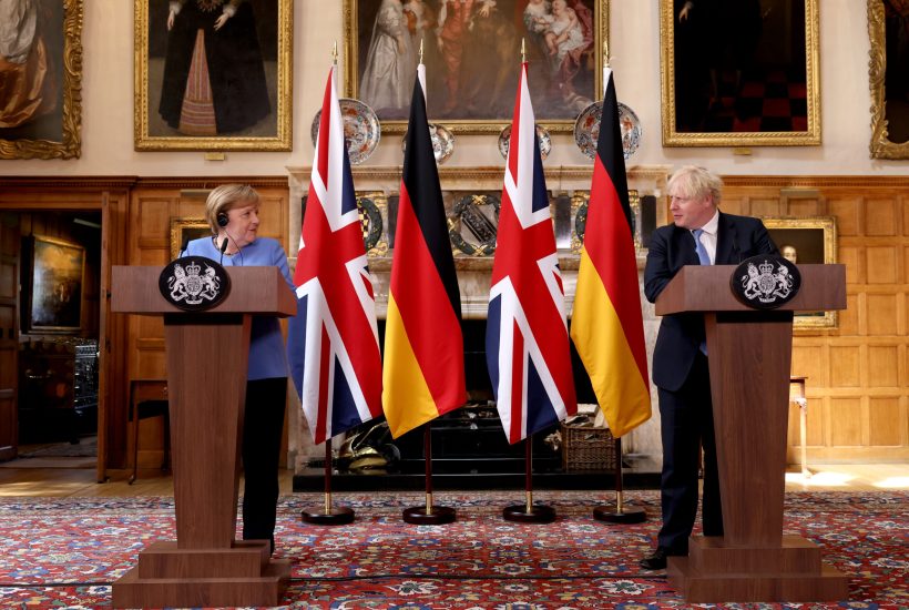 Boris Johnson and Angela Merkel have just held a joint press conference following their meeting at Chequers. The usual contrast in styles was on display; Merkel picked her words very cautiously while Johnson made sausages jokes—quipping that the ‘wurst was behind us’ when it came to chilled meats and the Northern Ireland protocol.