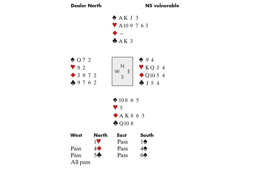 If someone had told me in February 2020 that virtually the whole world would be going into lockdown for well over a year, I would not have believed it was possible. But if someone had told me I would choose football over a bridge tournament, I would have laughed my head off. Well, I’m not laughing now. My heart (and my money) is with England, but sadly, as we all now know, they didn’t bring it home. I wouldn’t have missed it, though. I watched with a group of bridge players who all abandoned the green baize for Wembley. It was the first time I have seen most of them since lockdown struck, unless you count the Zoom post mortems that have been gathering online to discuss hands. Here is one of them: