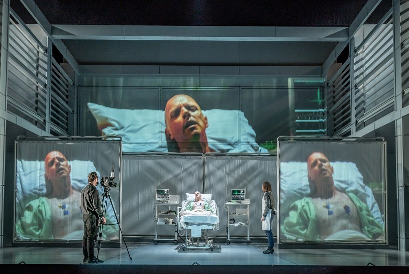 Alexander Litvinenko lies in a London hospital, dying of polonium poisoning. That photograph from 2006 haunts the memory: the medical robe, the electronic monitors, Litvinenko’s accusing gaze and bald, ravaged head. But in case we needed reminding, Grange Park Opera handed out copies of Death of a Dissident, the account of the crime by Litvinenko’s widow Marina, and the principal source for Anthony Bolton and Kit Hesketh-Harvey’s new opera The Life and Death of Alexander Litvinenko. Minutes later, a hospital bed rolled on stage replicating that exact image. And then Litvinenko — the tenor Adrian Dwyer — opened his mouth and started to sing.
