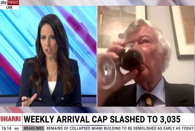 It was Sunday morning in London, from where Robertson spoke live on Sharri. At one point as the camera focused on Sharri Markson in the Sydney studio, Robertson took a sip of a red liquid in a wine glass. Oscar Wilde knew what he was talking about.