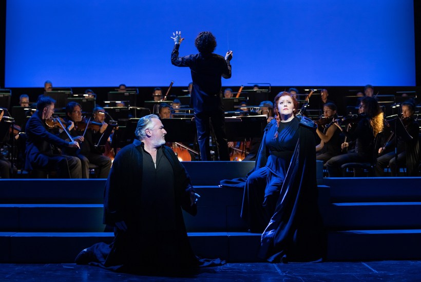 Meanwhile, there were entrances, exits and some awkward fighting, and Simon O’Neill, as Tristan, sang much of Act III while recumbent — as the plot demands. Costumes were of the dressing-up box variety, with no designer credited: still, this was hardly the first operatic production in which a bloke in black slacks and an M&S shirt wields a shining broadsword. And if the two lovers seemed to spend a lot of time standing apart, facing the audience (Miina-Liisa Varela, as Isolde, delivered her final ‘Liebestod’ centre stage and spotlit, like Streisand playing Vegas), well, that’s social distancing, surely? Can’t be helped. Then I re-read Michael Tanner’s 2003 review of the original Lehnhoff staging and discovered that it was exactly the same then, too.