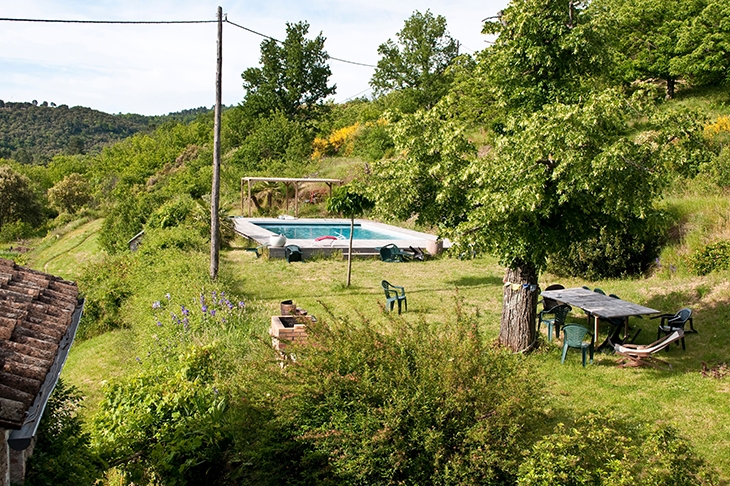 After an hour we walked a hundred yards down a shady lane and through two gates to where there is another pool which we have been invited to use whenever we like. This one was a large oblong, set in a lavender garden. Klynton, who had never before in his life suspected the existence of, let alone seen, let alone taken a running jump into a privately owned swimming pool, thought this pool was better than the first one because it was bigger.
