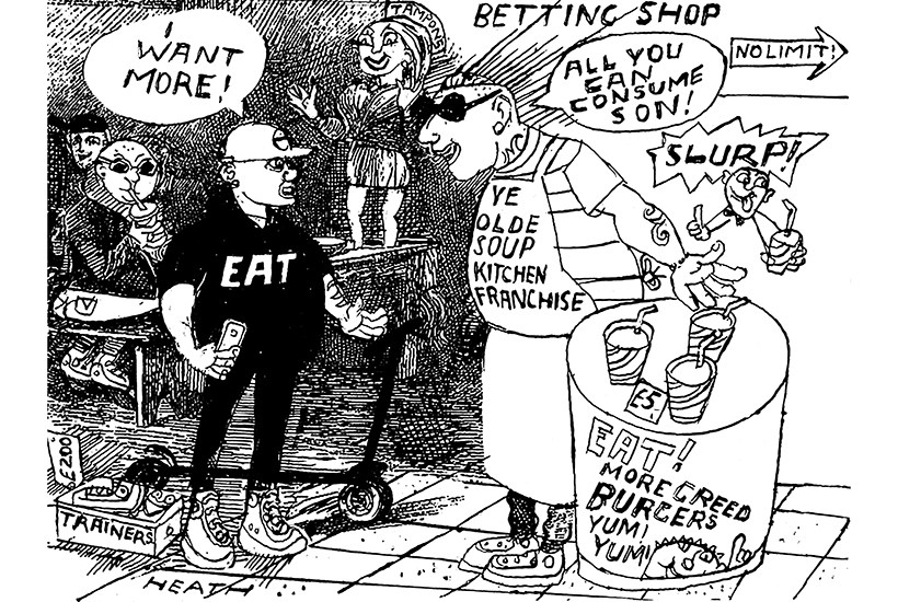 Then there is ‘shoe poverty’ which supposedly afflicts four million children. In February this year, the Daily Mirror reported: ‘Children are having to go to school wearing slippers or Wellington boots due to increasing levels of shoe poverty.’ Footwear hardship is apparently accompanied by ‘clothing poverty’, which, in the opinion of one research group is so serious ‘that thousands of people in the UK have very little or nothing to wear’, which is strange because the cost of clothing has more than halved over the past 30 years.