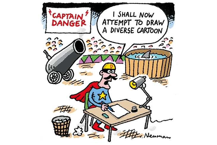 We live in a sensitive age. Cartoonists agree on the need to promote diversity, but the complications are endless. Diversity itself is becoming a dirty word, suggesting ‘diverging from the white mean’. Meanwhile ‘inclusive’ is said to imply whites doing the including.