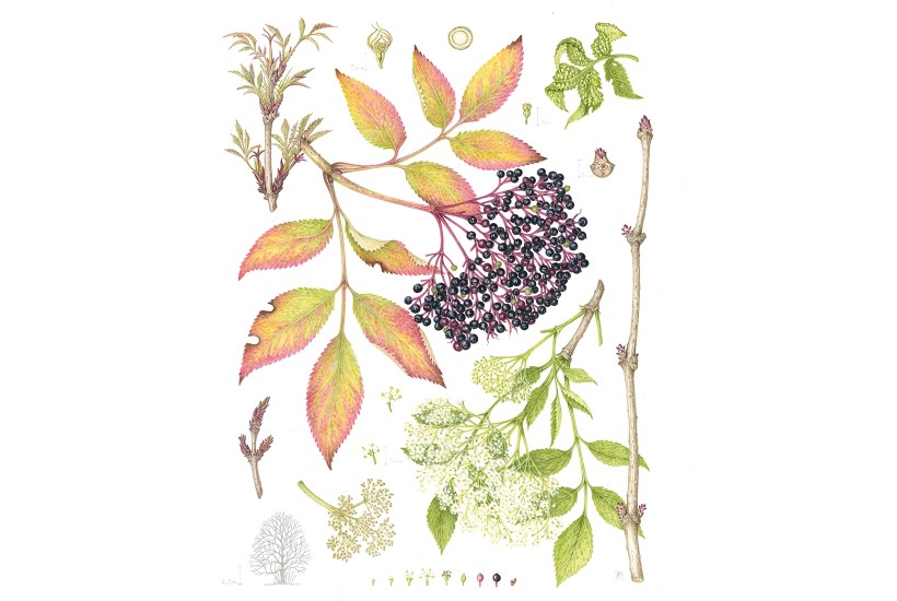 That is not to say that the works are devoid of expression. As Elizabeth Blackadder once wrote: ‘The shape of the spaces between the flowers is… nearly as important as the flowers themselves.’ Much of the interest lies in the composition. An artist painting broad beans might depict the plant from one perspective and the opened pods from another beside it. Setting a bird’s-eye view of fruit beside a portrait of the tree it came from presents challenges of scale as well as placement on the page.
