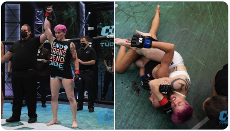 I am going to comment on a fight I didn’t watch — I’m not sorry, can’t bear to watch. I hate fighting; I know nothing about MMA and I don’t have any interest in it. What has taken my interest, is the spectacle of blokes beating up women to cultural acclaim. I am referring to 38-year-old transgender identified male Alana McLaughlin winning in their remarkable MMA debut with a “rear-naked choke” on more experienced female Celine Provost.