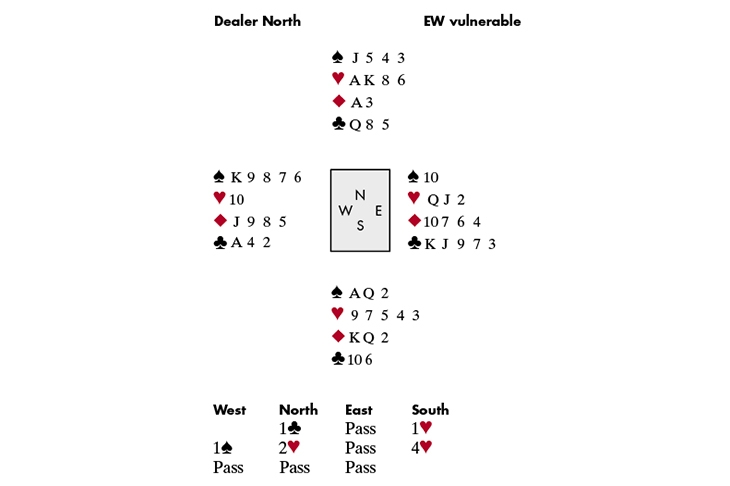 West led the ◆5. Ewa won with dummy’s ace. If trumps were 2–2, game was making, so she cashed the ♥AK — and got the bad news. West obviously held the ♠K for his overcall, so there was no legitimate line to make the contract — but what about a little subterfuge, followed by an end-play? Ewa crossed to hand with the ◆K, cashed the ◆Q, discarding a club, and then played a low spade towards dummy’s ♠J! West, slightly bemused by this development, played low, and the ♠J won. Ewa now exited with a trump. East won, played a low club to West’s ace, won the club return with the ♣K, but now had to present declarer with a ruff-and-discard for her 10th trick.