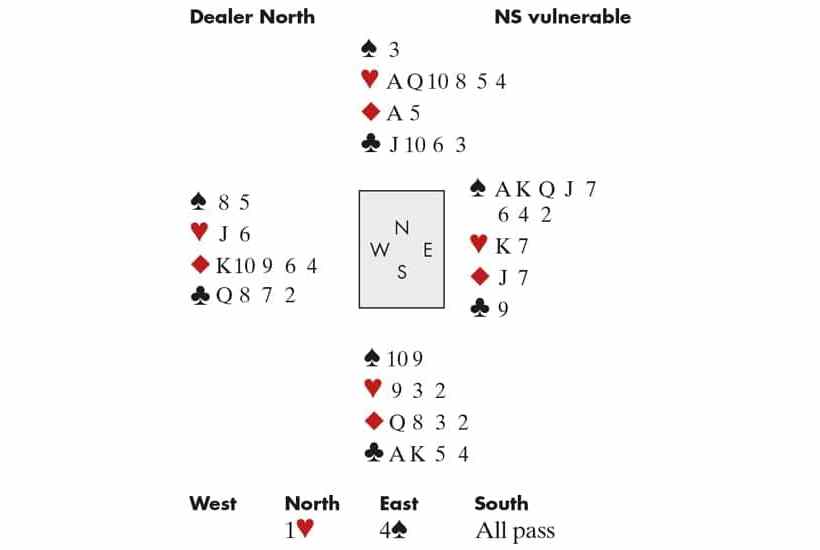 Sitting South, I led the ♣K, then switched to a trump. Andrew drew a second round, then played the ◆7. I followed low, my partner captured dummy’s ◆10 with the ◆A and returned a club. Andrew ruffed, crossed to dummy’s ◆K and played a heart towards his ♥K — contract made. Did I notice what I might have done, Andrew wondered? The answer was to play my ◆Q on his ◆7: then he’d have had no entry to dummy to play a heart (due to the blocking ◆J). Note that had Andrew played his ◆J first instead of the ◆7, I would need to duck — and so would my partner!