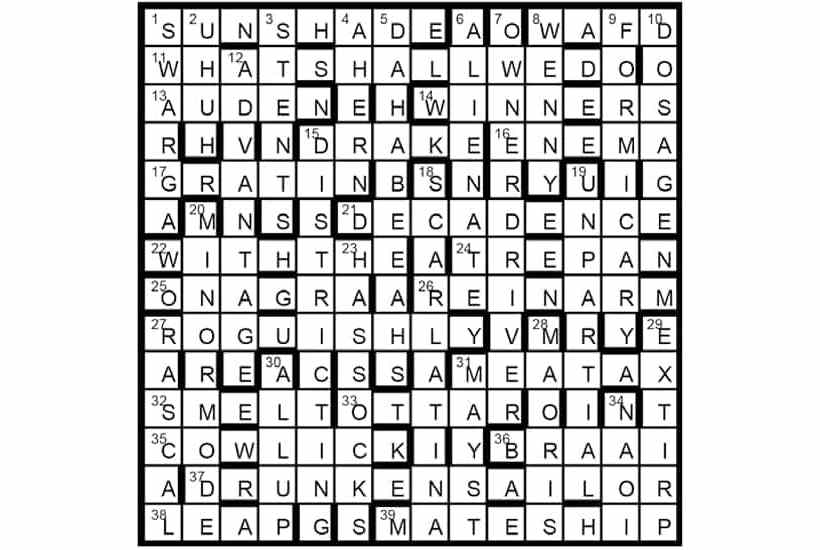 The question posed by the song is 11A/ 22A/37A. Suggested by 37A, other unclued lights were anagrams of words meaning sailor: 17A – rating; 26A – mariner; 39A – shipmate; 10D – sea dog; 27D – lascar.