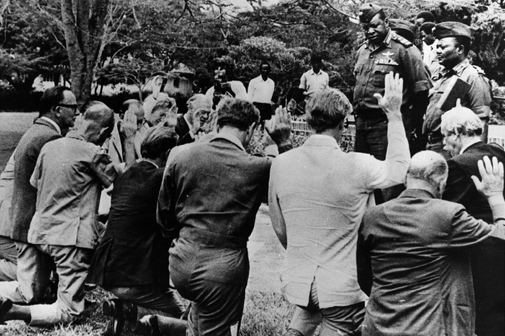 The photo above shows fourteen whites kneeling before Idi Amin in Kampala, Uganda in 1975. Colin Kaepernick was punished for taking a knee during the US national anthem before football games in 2016. The consistent and sensible approach surely is to leave it to the discretion of the individual athletes, neither banning nor mandating politically charged gestures.