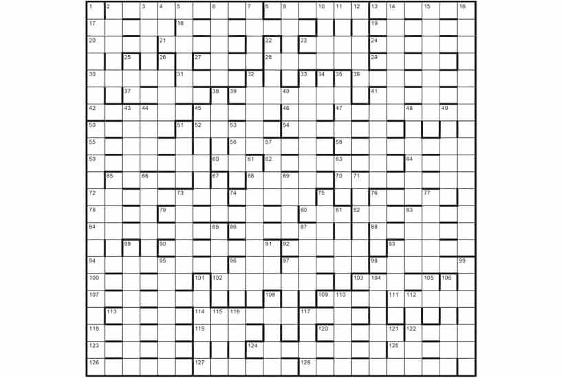 Ten pairs of unclued lights give the names of people whose 89 was ‘50D/2A’ (six words in total). They include one 37, two singers, a prolific 34, a colourful writer, an outré TV star, an expert at ‘16/6/38’ (six words in total), a film producer, a mathematician who also watched ‘128/103/10’ (five words in total) and a 93A/79. Elsewhere, ignore two accents. Thirty-three special clues include a definition and a hidden letter mixture of the light.