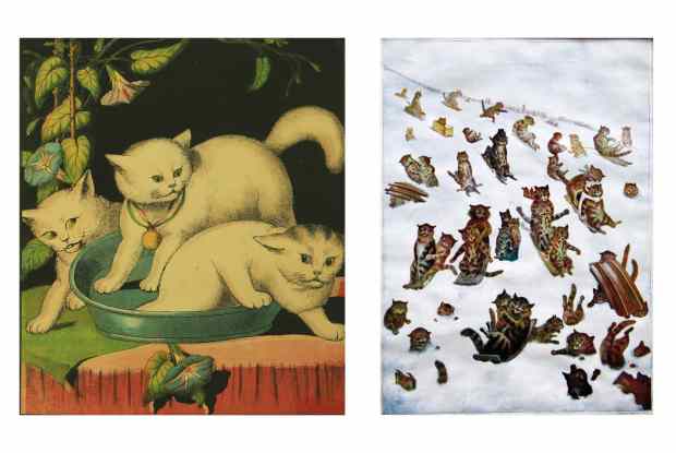 The trouble with handmade cards, whether by artist or amateur, is that they set a bar. You can’t painstakingly paint and ink one year, then do Clintons the next. I rang The Spectator’s cartoonist Michael Heath to ask what he does. Heath tells me he both rather dreads and derides Christmas. His parents didn’t much celebrate the day itself and, in any case, he was a war child and there wasn’t much to celebrate or much food or drink to celebrate with. I ask, thinking I know the answer, what he thinks of the imagery of Victorian decoupage: the moppets with mufflers, the ice-skating tots, the kittens playing Blind Man’s Bluff. Heath sets me right. ‘I love the Victorian decoupage tradition. That’s when Christmas gets going. I like that period — plum puddings and Tiny Tim and God Bless us, every one. I wouldn’t mess around with that.’ Heath always ‘goes down the funny road’ when he can, though ‘funny is a dangerous business’. Once, when asked to design a Christmas card for the shop of a friend of a friend he found a photograph of a corpse in a morgue with a tag on its toe with a name. Heath replaced the name with ‘Happy Christmas’ and the shop was duly appalled.