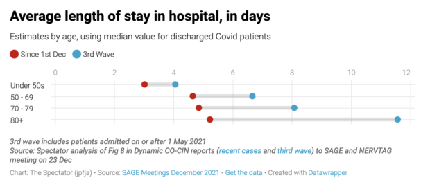 Recent Sage reports have stressed that we’re still waiting on a major piece of information: the average stay in hospital for Omicron patients. It could be a game-changer. If the stay halves, the Covid-handling capacity of the NHS doubles and the risk of hospitals being overwhelmed falls quite a lot. As SPI-M says in a note published on 23 Dec: