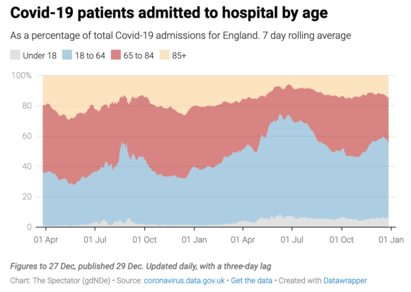 Sage is being more coy. Indeed it says its age analysis ‘was available for participants to read’ at its last two Sage meetings but was ‘not considered or discussed’. Why not, if it’s such an important metric and such potentially significant news? Sir John Bell, Regius Professor of Medicine at the University of Oxford, recently spoke of an average hospital stay of three days, not five: if so, even better news. But it’s unclear where that figure came from.