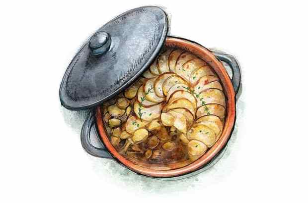 But this is what I think of as a classic trifle. I haven’t messed around with any of the traditional constituents. Trifle sponges sit at the bottom, soaking up glugs of sherry. A Melba-esque mixture of raspberries and peaches sits above, sinking slightly into the sponge. I’ve given instructions for a proper custard, but you needn’t make your own — just use a thick shop-bought one. And then on the top, plenty of softly whipped cream, topped with toasted flaked almonds. No twists, no flourishes, just a perfect trifle.