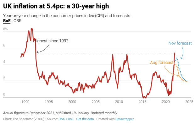If Boris Johnson manages to cling on to his job, he’ll have much more than the parties of lockdowns past to worry about. Britain’s cost of living crisis is worsening still, with CPI inflation rising by 5.4 per cent in the 12 months leading up to December last year. This has, once again, outpaced consensus, surging even further past the Bank of England’s most recent official forecast.