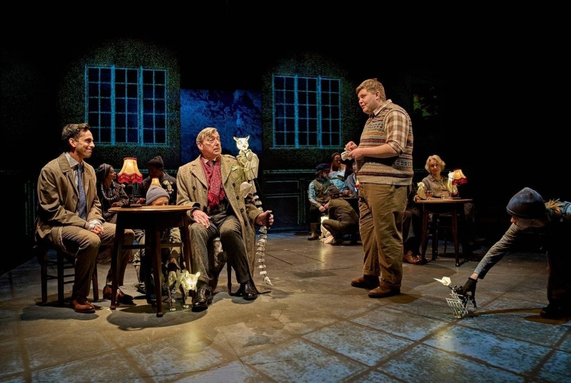The many locations of the book are suggested by colourful imagery projected on to ranks of flats that recede to the rear wall. The resulting 3D effect is impressive. But, at the same time, it looks like a cut-price movie version directed by someone who can’t be bothered to make an actual film. The trickiest element of the show is the presence of ‘daemons’, or pet-ghosts, which accompany every character on stage. Might a wise producer have decided to ditch these appendages? Instead a puppeteer, Barnaby Dixon, was hired and given a rather modest budget. He seems to have gone to Poundstretcher and the results are quite amusing. There’s a woodpecker made from shuttlecocks, a King Charles spaniel fashioned out of blank business cards, a stag beetle whose wings are drinking straws, and a pit bull suggested by rolls of kitchen tissue. But spare a thought for the poor old actors who have to wear these clip-on origami jobs throughout the run. It’s worse than the Nativity play where every character, including Baby Jesus, wore a halo made from a doughnut.