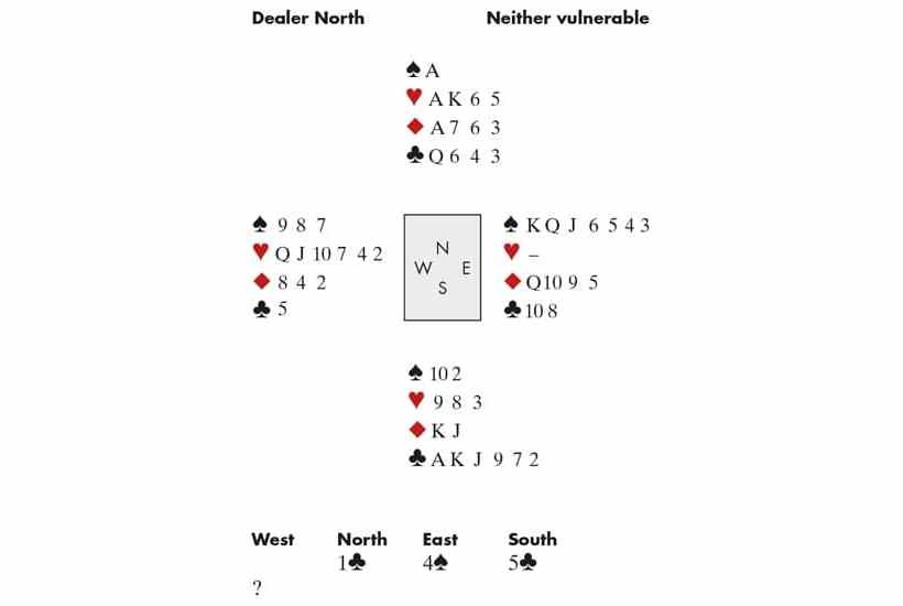 North’s 1♣ opener was artificial and strong. East (David Gold) made a pre-emptive overcall of 4♠, and South bid 5♣, a slam-try. What would you bid as West? Zia had no hesitation: he doubled for penalty! This was a ‘striped-tailed ape double’: he was sure the opponents were making a slam, and that a doubled overtrick or two in game would be less expensive. As he hoped, they passed, and scored two overtricks for 750, instead of the 1440 they would have made for bidding 7♣. And why does the double have such a strange name? Because he would have run like a striped-tailed ape to 5♠ had the opponents redoubled. All I can say is, if that’s how Zia plays when he has Covid, perhaps it’s his opponents who should run when he’s better!