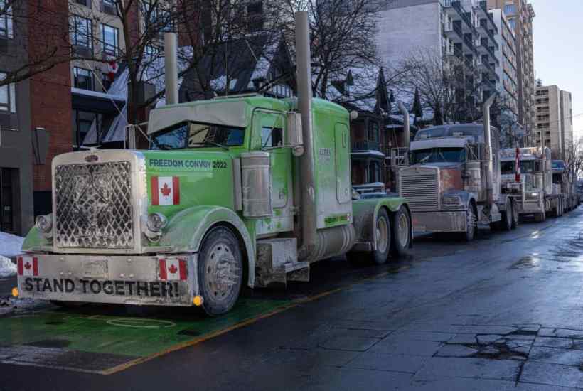 It is estimated that 50,000 truckers are headed to Ottawa, where they will protest on Parliament Hill on Saturday. Yet at a press conference on Wednesday, Trudeau labelled them a ‘fringe minority’ that ‘hold unacceptable views.’ Despite widespread support across the country, he claimed they ‘do not represent the views of Canadians.’ Without a hint of irony, he added, ‘[Canadians] who have been there for each other, who know that following the science and stepping up to protect each other is the best way to continue to ensure our freedoms, our rights, our values as a country.’