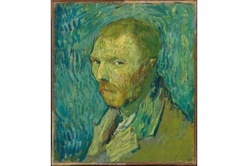 This helps to explain the abundance of self-portraits — more than two dozen —from 1886 and 1887, the period he spent living in Paris. These are, among other things, five-finger exercises in which he tried out new techniques and experimented with the brighter, impressionist palette that he was adopting at that time. In a picture such as ‘Self-Portrait with Grey Felt Hat’ (September–October 1887) you can see the Van Gogh ‘signature style’ coming into being — the broad strokes of the brush with which he draws in paint, the brilliant use of complementary colours, so his head is surrounded by a whirling halo of blue and red and forehead furrowed with lines of green. Here is a portrait of the artist learning to be ‘Van Gogh’.